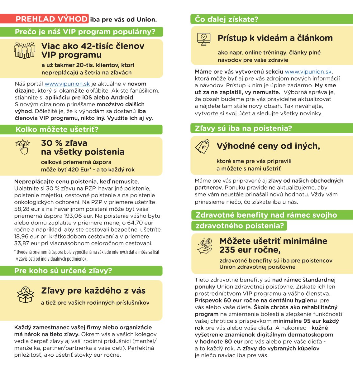 V spolupráci so zdravotnou poisťovňou Union ponúkame Vám - našim členom a Vašim rodinným príslušníkom benefitný program pre všetkých členov KOS na portáli www.vipunion.sk