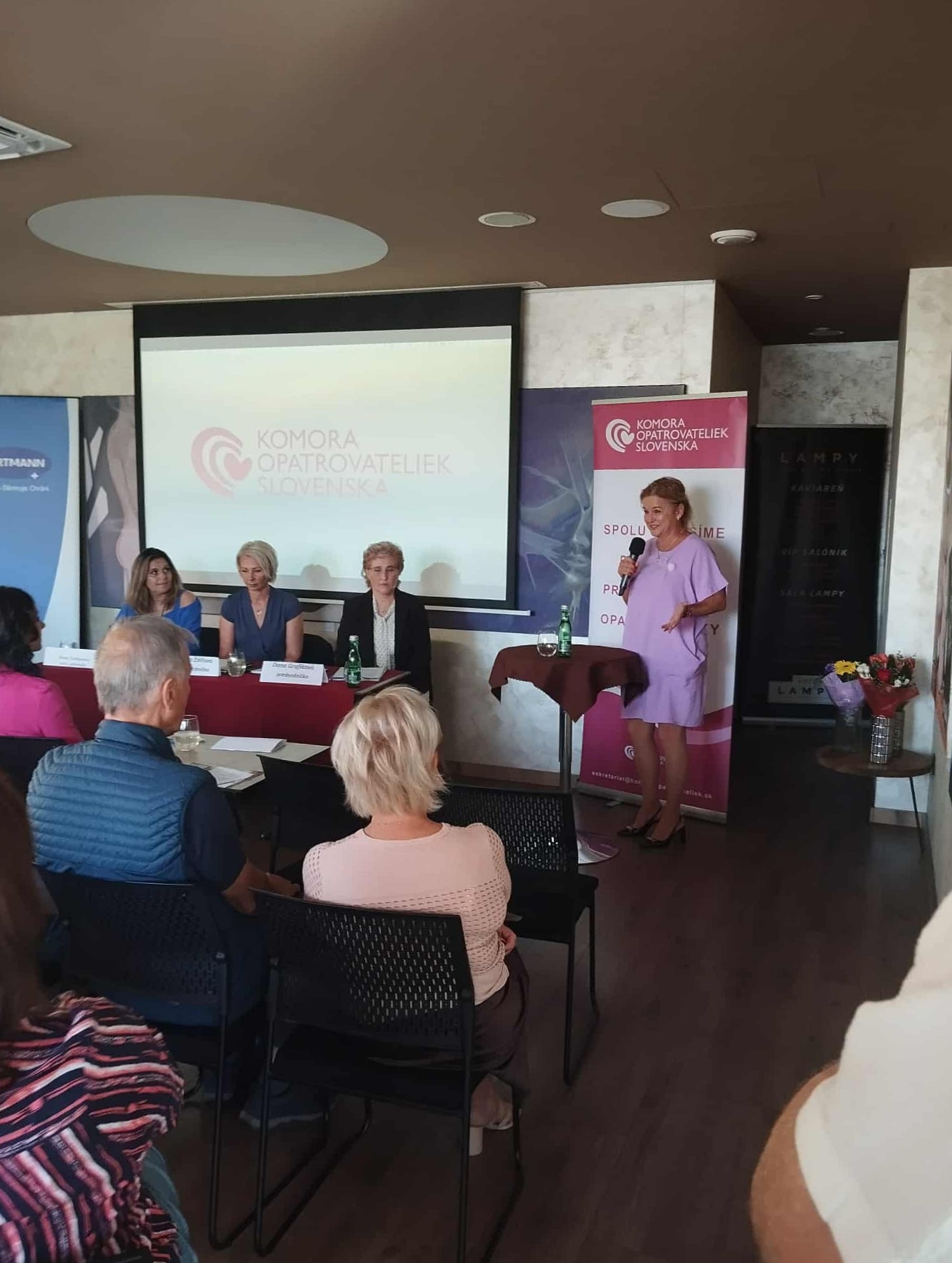 Pani Lubica Bezeli z HARTMANN Slovensko z pracovných dôvodov nemohla byť prítomná, preto som jej prezentáciu o nadačnom fonde Hartmann ktorý refunduje opatrovateľkám opatrovateľské kurzy prezentovala ja. Od r. 2021 doteraz je to 240 podporených žiadostí a takmer 67 500€!